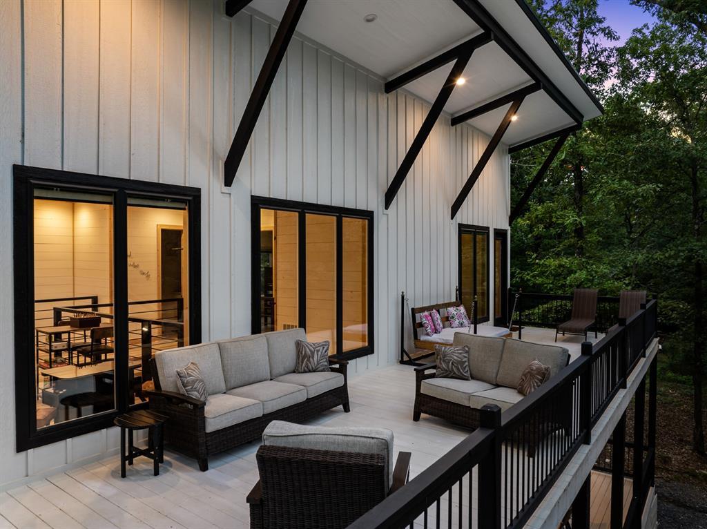 Nestled just minutes from the heart and in the quiet area of scenic Hochatown, Cabin Z is an idyllic retreat that offers a rejuvenating escape. This Luxury Modern STR cabin has 1978 sqft of heated&cooled living area. Also has 1500 sqft of outdoor living. Outdoor kitchen with a sink and gas grill. Outdoor fireplace. As you enter the enchanting world of Cabin Z, a captivating ambiance invites you to immerse yourself in unforgettable moments. This charming cabin embraces an open space concept. The living room has an inviting gas fireplace, offering the perfect retreat after a day filled with excursions. The fully equipped kitchen, boasting a gas cook stove, dishwasher, microwave and disposal. Guests can enjoy a wonderful night's rest in either the king bedroom with an ensuite on the main level or the king bedroom upstairs. Each room features an adjustable base to customize the head of the bed for personalized comfort. Enjoy private deck entrances from both rooms, allowing for a breath of fresh air whenever desired. Families or groups seeking cozy accommodations will appreciate the charming bunk room with two full bunk beds.The loft area is perfect for a bit of entertainment and relaxation, complete with a daybed accompanied by a twin trundle for additional sleeping space, an arcade table loaded with 1400 games.. This setup offers a versatile and enjoyable space for guests to unwind. Immersed in a haven for outdoor enthusiasts, this property boasts three distinct areas designed for ultimate relaxation and entertainment. Step onto the covered back porch, where an outdoor kitchen beckons with its built-in gas grill, sink, and a gas fireplace, complete with a TV hanging above—an ideal spot for gatherings. A few steps down leads to the inviting Party Deck, perfect for guests, featuring ample seating, a hot tub.For an escape, ascend to the balcony with its multiple sitting areas, offering a setting to enjoy the wildlife or morning coffee