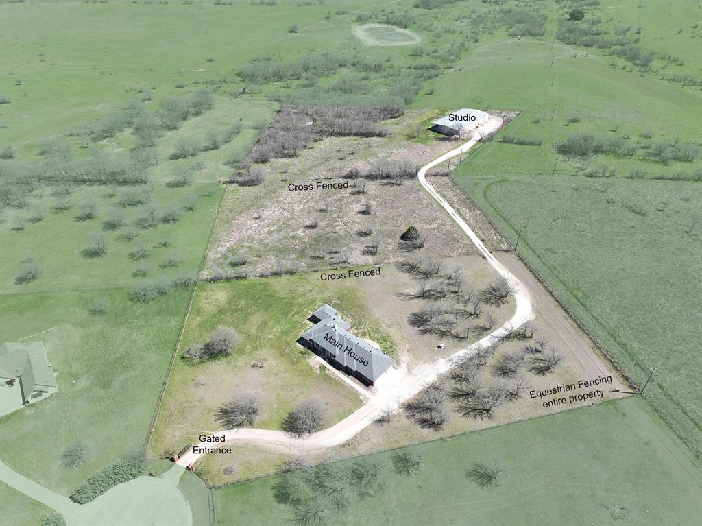 Welcome home to this beautiful 9.09 acre hilltop property located in a gated community….The entire property is fully pipe fenced for horses, offering security, and peace of mind. This property is perfect blend of spacious comfort and serene countryside living, with a 3,404 sf main home as well as a 5,500 sf fully equipped Studio barndominium (art studio, shop, accessory dwelling unit). Providing ample space for your dreams to unfold….The freshly painted custom home is 3,404-square-feet with 4 bedrooms and 3 baths. With a thoughtfully designed interior, featuring open-concept living areas ideal for entertaining or relaxing with family. Large windows throughout the home invite abundant natural light….At the rear of the property, you'll find an impressive 5,500-square-foot 100% air conditioned and heated barndominium (art studio, shop, accessory dwelling unit) with heavy 120_240 volt power, providing versatile open space for art studio, workshop, storage, with fully equipped apartment…This incredible combination of comfortable indoor living, acreage, and the added benefit of a spacious barndominium ensures endless possibilities and unmatched value. Don't miss the chance to make this exceptional property your new home.