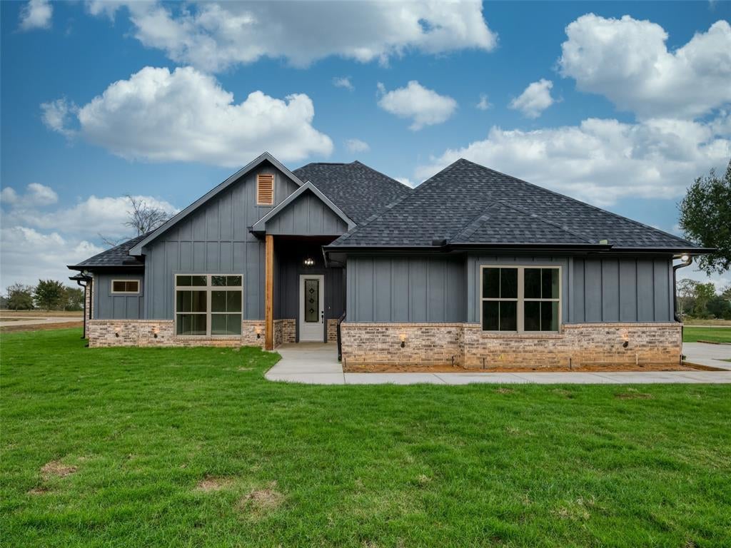 Beautiful custom feeling home on a corner lot in the new Gruene Valley Ranch neighborhood. Home boasts of 4BR, 3bath with one half bath. Nice open floor plan. Electric fireplace in the living room, overlooking the kitchen, with walk in pantry and large island. This is a perfect place for dinners and gatherings. To top it off, outside is a large, covered patio with a wood burning fireplace and outdoor kitchen set up. Excellent floorplan with great closet space. Close proximity to Lake Palestine, Bullard, and Tyler. This lovely country setting neighborhood is so peaceful and convenient. Come see!! Your will appreciate all the extra touches in this NEW CONSTRUCTION HOME.