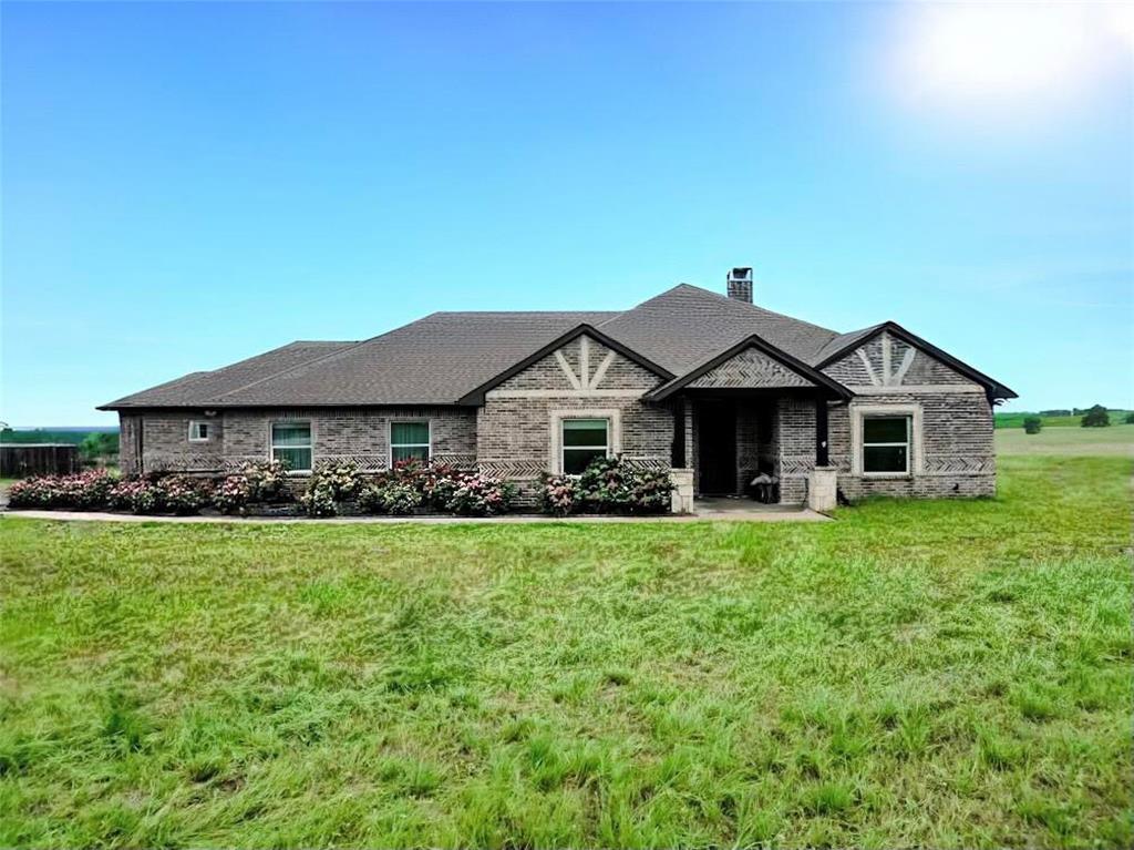 Escape to your own 10-acre ranchette featuring a spacious 4-bedroom, 2.5-bath brick home with over 2,700 sq ft, a 2-car garage, storm shelter, and a large covered back patio perfect for peaceful sunsets. The expansive primary suite includes dual vanities, a soaker tub, a glass-enclosed shower for two, and a huge walk-in closet. The generous living area showcases a stunning floor-to-ceiling brick wood-burning fireplace. Outside, a 40x40 powered workshop with a large roll-up door and covered side parking is ideal for projects or storage. With pastureland, perimeter fencing on three sides, and room to roam, this property blends comfort, function, and country charm. Create your dream horse property or add a garden and chicken coop to start your farmstead today!