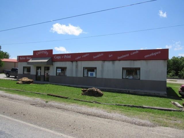 Great commercial location on US Hwy. 377 with high traffic count & excellent visibility in a fast growing central Texas town. The 2100 sq.ft. building can be divided into 2 separate spaces & can be utilized as 2 different type businesses with each side having a separate entrance or can be one entity utilizing the entire building. The building was formerly University Barber and Copy Print shop and is on a busy U.S. Hwy (appx. 14,000 vehicles per day based on TX dot info). This is a great location for many different type businesses including medical, retail, barber-salon, coffee & restaurant establishment or investment property for rental income. Bldg. amenities include stained concrete flooring, metal roof, 2 A-C heating units, 2 bathrooms and a lg. storage closet area. The bldg. is situated on almost .06 acres and includes metal and stucco siding. This is a great property to operate your own business on one side and lease out the separate side for additional income. Motivated seller will consider owner financing.