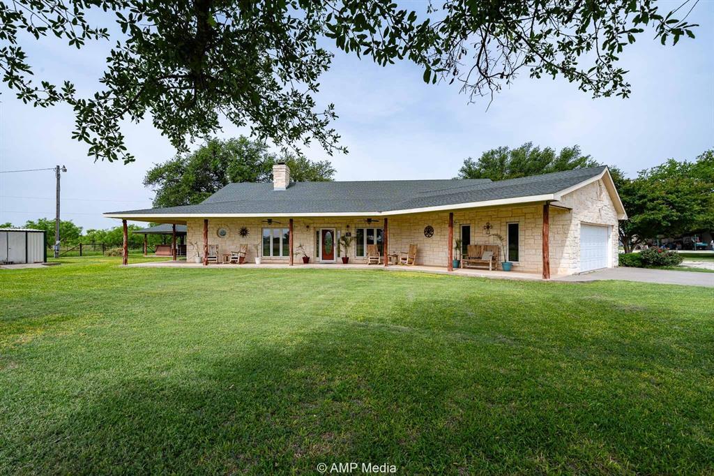 Welcome to this stunning, one-of-a-kind property that offers the perfect blend of beauty, function, and craftsmanship. Situated on a spacious tract of land, this custom-built four-bedroom, two-bath home is surrounded by towering oak and elm trees that provide shade and privacy. The landscape is ideal for outdoor entertaining, relaxing evenings, and enjoying nature at its finest. The home itself is solidly constructed with a durable post-tension slab foundation and stone exterior, ensuring both lasting quality and timeless curb appeal. A spacious three-quarter wraparound porch creates the perfect setting for morning coffee or evening gatherings, while the covered spa area adds a nice touch to your everyday living. The property is enclosed with a high-quality goat wire fence on sturdy metal posts, all in excellent condition—ready for livestock, pets, or simply to define your space. Whether you’re looking for a serene retreat, a family-friendly homestead, or an entertainer’s dream, this beautifully maintained property has it all. Don’t miss your chance to make this rare find your forever home!