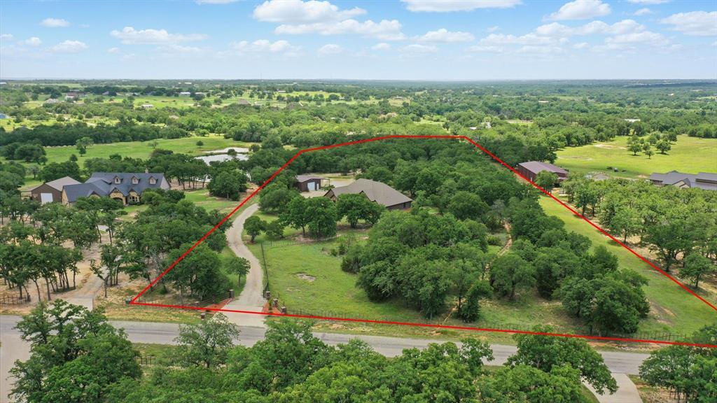 Opportunity awaits for your own private, country retreat in the highly desired community of Peaster. Nestled on over 6 acres, this sprawling brick and stone traditional home offers a rare combination of size and tranquility. Drive into the private driveway to the custom built, almost 2600 square feet residence with its very own stock pond. Step inside the generous foyer of this one level home and you will be greeted by immaculate engineered wood floors and a stone, gas burning, fireplace, creating a warm and inviting focal point for gatherings. The open and airy design, seamlessly connects the living, dining and kitchen areas. The dining room features large windows with views of the natural landscape. The spacious kitchen offers ample granite counter space, a breakfast bar, a gas range, a walk-in pantry and durable tile flooring. The large master suite situated conveniently to the garage entry, offers an extra large bathroom with a walk through shower, soaking bathtub, double sinks and linen storage. The guest bedrooms offer spacious closets and are situated for you guest to have privacy. A second family room has limitless possibilities for additional entertaining space and has french doors leading to the large covered back porch. A half bath and separate laundry room complete this thoughtful layout. Outside the home is the large workshop with an attached carport, offering plenty of space for hobbies, lawn tools or fishing equipment for that stock pond! The expansive acreage remains in its natural stare, providing endless possibilities to add a garden or swimming pool. Additional amenities include a loafing shed, storage building, sprinkler system, gated entrance AND NO HOA all on this AG EXEMPT property! This is a true gem waiting to be discovered!