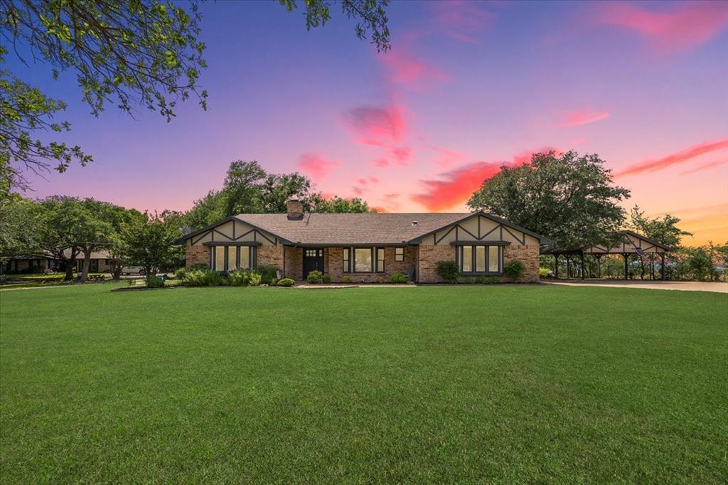 Completely renovated in 2023, this gorgeous 3-bedroom, 2-bath home lives like new and sits on a stunning 1.89-acre bluff offering breathtaking sunset views. With no city taxes or HOA, you're free to enjoy this property on your own terms. Inside, the primary suite features built-ins, a luxurious ensuite with dual sinks, a 100 yr old renovated clawfoot tub, and two walk-in closets—a true owner’s retreat. The updated kitchen is equipped with solid wood cabinets, quartz counters, double ovens, and an eat-in kitchen perfect for casual family meals. Plenty of storage abounds with built-ins, large closets, and a spacious 2-car garage plus a 2-car carport for extra parking or workshop space. Outside, the expansive bluff-top yard means endless possibilities—plant a garden, add a pool, or simply bask in privacy and panoramic views. This is a rare find: renovated, move-in ready, and ideally situated in Aledo ISD with room to roam, room to grow—and views that will stop you in your tracks every night.