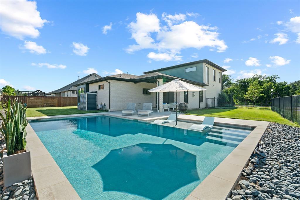 ***New Price*** Modern Luxury Meets Custom Craftsmanship in Argyle! Step inside this one-of-a-kind modern masterpiece in the picturesque pocket neighborhood called The Lakes of Argyle. Every inch reflects the unmatched artistry of Maykus Custom Homes, a premier Southlake, Texas builder celebrated for more than 60 years of quality craftsmanship. Designed in collaboration with the homeowner, this residence is one of only six Maykus homes in LOA, there’s nothing else like it on the market. Situated on a massive CORNER LOT spanning over a third of an acre, this home is surrounded by mature trees and peaceful green space, offering rare privacy and natural views. The sleek exterior and seamless indoor-outdoor flow set the tone for modern living, featuring sliding glass doors that open to a heated saltwater pool with tanning ledge and a covered patio oasis perfect for entertaining. Inside, you’ll find real hardwood flooring throughout the main level, custom cabinetry throughout, and designer lighting and tile that elevate every space. The open-concept living area features a stunning gas fireplace, soaring vaulted ceilings, and a gourmet kitchen with an oversized walk-in butler’s pantry. The large utility room features a built-in desk area and wall to wall cabinetry. Upstairs, a spacious flex room offers endless possibilities for a media room, bunk room, gym, or game space. The primary suite is a showstopper with a spa-inspired bathroom featuring a dual-entry walk-in shower, custom vanities, and a walk in closet. Additional highlights include energy-efficient windows, tankless water heating, smart home wiring, and extra-thick sound buffering walls. Located within Argyle ISD’s top-rated Hilltop Elementary zone and just minutes from Liberty Christian School and Denton Country Club, this modern Maykus home blends elevated design, enduring quality, and everyday comfort. Don’t miss your chance to own a truly custom, modern luxury home in the heart of Argyle.