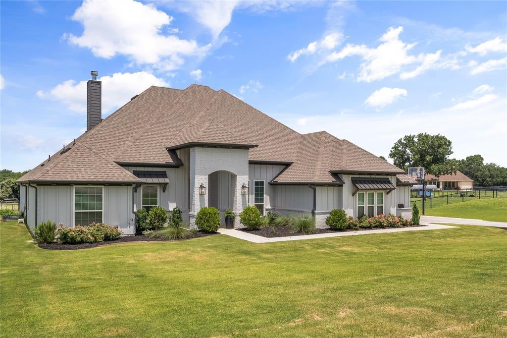 No HOA on two Acres with a Modern Twist! Nestled on 2.06 acres in a quiet wooded community, this stunning home blends modern design with rustic charm. Inside, you’ll find an open-concept floor plan filled with natural light, custom finishes, and a show-stopping island kitchen with floor-to-ceiling cabinetry, reclaimed wood accents, and designer details throughout. The spacious layout offers a private primary suite with spa-like bath, dedicated office (or optional 4th bedroom), and a versatile game room. Outdoors, enjoy mornings on the covered porch overlooking the pasture, or gather around the brick fireplace with TV hookup for cozy evenings. With a 3-car garage, extended driveway, and the rare freedom of no HOA, no city taxes, and no water bill thanks to a private well, this property offers the perfect balance of space, comfort, and country lifestyle—all just minutes from everyday conveniences.