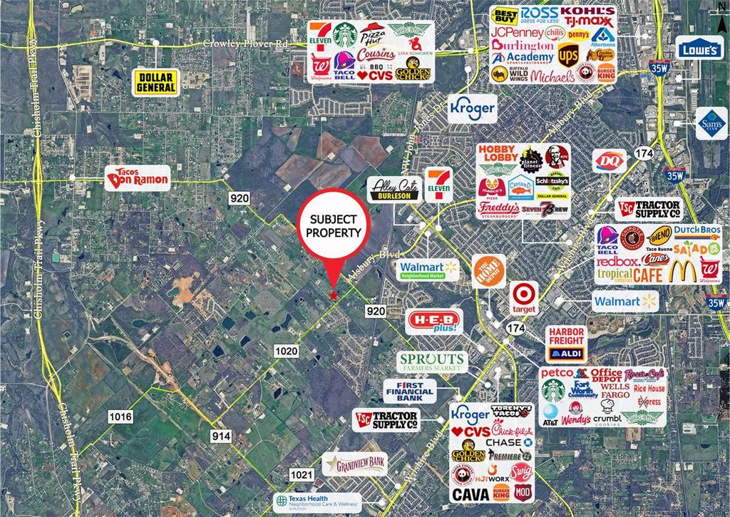 Great Development Opportunity, 6+ acres located in Burleson Planned Development Zone. This property is located in expanding city limits, with the extension of Alsbury Blvd. to CR 1020, MANY possibilities, 4 miles west of I-35 and 4 miles east of Chisolm Trail Parkway. Located 2 miles from projected 55-acre Burleson Community Park set to open Spring of 2026. Be apart of this rapidly developing part of Burleson. Positioned near major retailers, 3 miles from Chisholm Summit proposed master-planned community and Hooper Business Park. Includes 2415 sq ft home with 3 bedrooms, 3 baths, large open living area, and enclosed back patio. Multiple covered parking areas and RV parking. Value is in the land and location. Property is not currently zoned Commercial it will be up to the buyer to convert to commercial. Buyer to check with City of Burleson, Planning & Zoning and future land use. Listing includes 2 tax parcels 126-0186-01966 Ag exempt and 126-0186-01940. Want more land? MLS #20886737 includes additional tax parcel 126-0186-01965 Seller is retaining mineral rights.