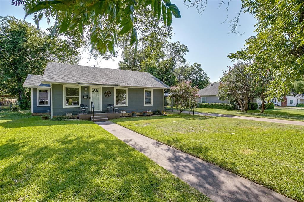 Full of character and charm! This adorable 2-bedroom, 2-bath 1920s-style home is nestled in the heart of Cleburne on a quiet, tree-lined street in the Original Cleburne neighborhood. Situated on three spacious lots, it offers a huge backyard with alley access, beautiful curb appeal, and plenty of room to relax, entertain, or even add a pool. Inside, you’ll find original hardwood floors, spacious bedrooms, a remodeled bathroom, and an updated kitchen with stainless steel appliances and ceramic tile flooring. The oversized utility room adds functionality. There is a 12x12 storage building, and two carports—one single and one double for a total of three covered spaces—provide abundant storage and parking. Whether you’re searching for a first home or an ideal Airbnb opportunity, this cute-as-a-button gem is just blocks from a local park and full of potential! New Roof Just Installed July 2025!