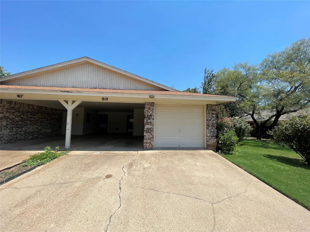 Tucked away in a quiet area just minutes from downtown Weatherford, this well-kept duplex blends comfort with convenience. The open layout connects the dining and living spaces, creating a welcoming atmosphere for daily life. The practical galley-style kitchen includes a dishwasher and electric range, with a dedicated laundry room located nearby. Both bedrooms feature carpet flooring and generous walk-in closets, while the remainder of the home is finished with low-maintenance ceramic tile. Step outside to a fenced backyard with a spacious covered patio—ideal for relaxing or hosting guests. Added perks include a one-car garage with an oversized storage room and an additional carport.