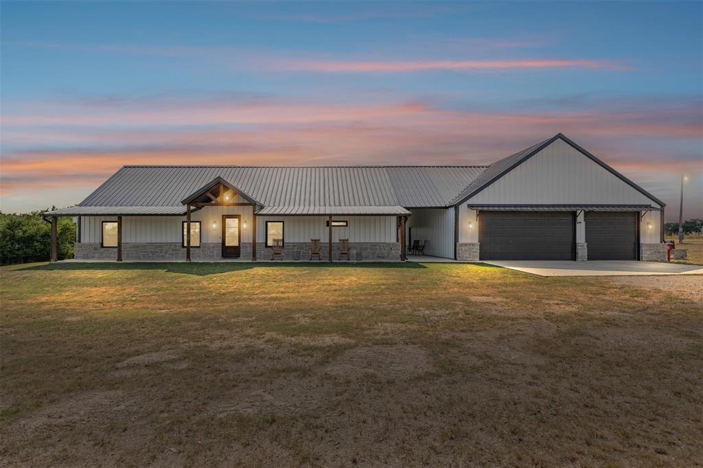 Hard to find small acreage property with a gorgeous modern farmhouse style home! This 8.62 acre property is outside the city limits, has no restrictions and adjoins the LBJ Grasslands! The home, built in 2023, boasts 3 bedrooms - one with a private loft - 2 full and 1 half baths, a study or office, open concept floorplan with stained, scored concrete floors designed to look like wood, a delightful banquet table off the kitchen, double ovens, pot filler, a killer laundry-mud room-pantry with separate access to the covered side porch. The detached 4-5 car garage-shop is amazing! A darling vintage barn with shed to house miscellaneous equipment and a large firepit nicely complement the home. Did I mention that the Bad Boy Zero turn mower comes with? Come out to the country and be wowed!!