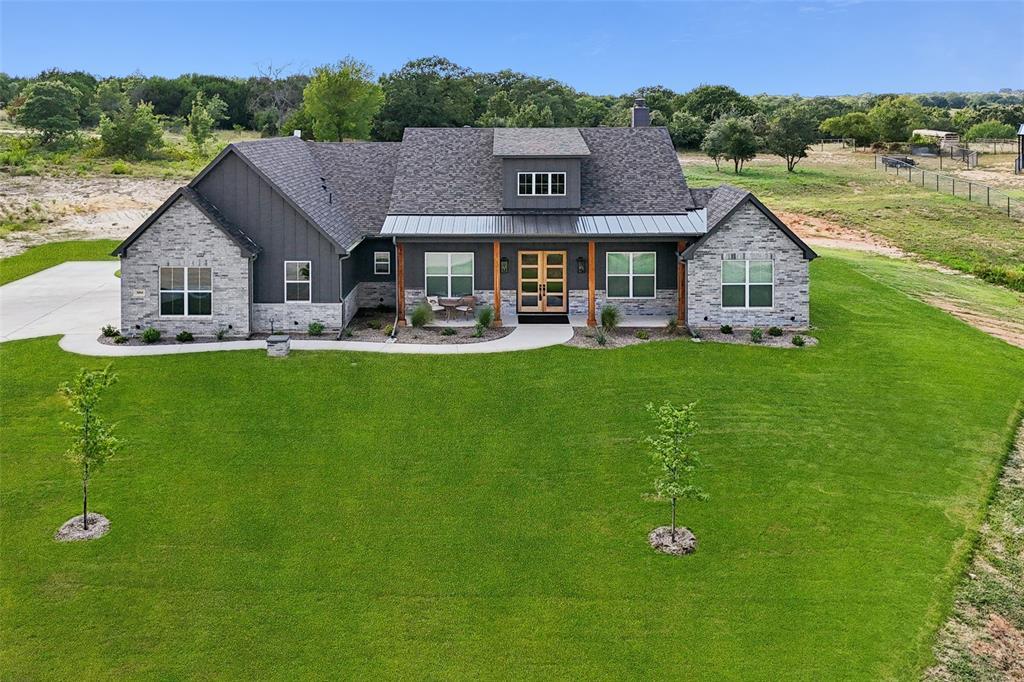 Experience the perfect blend of tranquility and convenience in this stunning 3-bedroom, 2.5-bath home set on a picturesque 2-acre lot with no HOA. Just 12 minutes from Weatherford Square, you’ll enjoy the quiet beauty of the countryside—complete with deer, doves, and other wildlife—while staying close to shopping, dining, and entertainment. Step inside to find a bright, open living room with a vaulted, beamed ceiling, a striking fireplace, and expansive windows framing sweeping views of the outdoors. The gourmet kitchen is a showstopper, featuring a large island with seating, sleek stainless steel appliances, abundant storage, designer finishes, and a cheerful breakfast nook. A formal dining room sets the stage for memorable dinners and celebrations. The private primary suite is a true retreat, boasting a spa-inspired bath with dual vanities, a soaking tub, an oversized walk-in shower, and an impressive walk-in closet. Two additional bedrooms and a full bath provide plenty of comfort for family or guests. Enjoy the serene outdoor living spaces with a welcoming front porch and a covered back patio—perfect for sipping coffee at sunrise or unwinding with breathtaking sunset views. If you’re seeking a home that combines elegance, comfort, and the peace of wide-open spaces, this one has it all. Don’t miss the 3D tour available online! Bundled service pricing available for buyers. Connect with the listing agent for details.