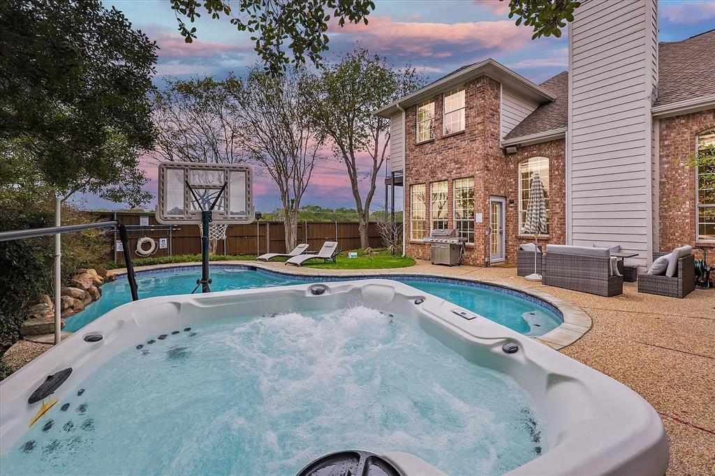 A stunning home perfectly situated on a corner lot in a prime location overlooking Indian Creek Golf Course. Offering the ultimate living experience for families or those who love to entertain. As you step inside, you'll be impressed by the elegant formal living and dining areas, ideal for hosting or enjoying quiet evenings with family. The kitchen is the heart of the home, featuring sleek white cabinets, stainless steel appliances, and gorgeous granite countertops, with a gas cooktop that's a chef's dream and a center island that provides ample space for food prep and casual dining. The spacious living room seamlessly flows from the kitchen, boasting hardwood floors, a cozy gas fireplace, and soaring vaulted ceilings. The primary bedroom is a serene retreat, complete with an updated bathroom featuring a relaxing jetted tub, frameless shower, and stylish granite countertops. Downstairs, you'll find a versatile secondary bedroom and a convenient full bath, while upstairs, the layout opens up to a movie theater, as well as two more bedrooms that share a well-appointed bathroom. One of the bedrooms features a spacious balcony with breathtaking views of the Indian Creek Golf Course, providing a tranquil escape and a perfect spot to enjoy the scenery. And when the weather warms up, the private backyard oasis is the perfect place to unwind, with the sparkling pool and hot tub, all set amidst beautiful views of Indian Creek Golf Course, creating a tranquil and picturesque setting that's perfect for outdoor entertaining or relaxation. This home is centrally located between the DFW Airport, Downtown Dallas, major highways, and top attractions, making it the perfect blend of luxury, convenience, and lifestyle. With its stunning features, prime location, and endless possibilities, this home is sure to exceed your expectations and become your dream home.