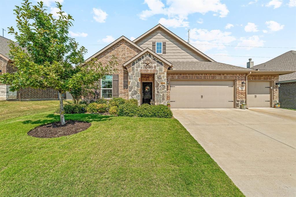 Welcome to this beautifully maintained, 3-bedroom, 2-bathroom home with a dedicated office, nestled in the highly sought-after Silverstone at Pearson Ranch Community! This home impresses with its exceptional curb appeal, spacious layout, and rare 3-car garage. Inside, an open-concept living area welcomes you with abundant natural light, seamlessly connecting the living room, dining space, and stylish kitchen — complete with granite countertops, and a large center island with breakfast bar. The kitchen includes easy access appliances, ideal for those seeking a user friendly kitchen layout, ample cabinet storage and pantry. The kitchen is open to the spacious dining area and family sized great room with fireplace. The primary suite is tucked away and offers a serene retreat, featuring a spa-inspired ensuite bathroom and a generous walk-in closet. A dedicated office provides the flexibility to function as a home office, tv room, play or home school room. Two additional bedrooms and a second full bathroom ensure plenty of space for family or guests. Step outside to a generous covered patio overlooking a spacious backyard — ideal for entertaining, unwinding, or outdoor fun. This home includes a full water filtration system and backs up to a greenbelt. With the Ric Williamson loop now completed, traffic on White Settlement has decreased significantly, creating a very quiet setting. Community perks include a sparkling swimming pool, clubhouse and playground. Located just minutes from shopping, dining, and including the highly sought after Mary Martin Elementary School, this move-in-ready home blends style, comfort, and convenience in one perfect package.